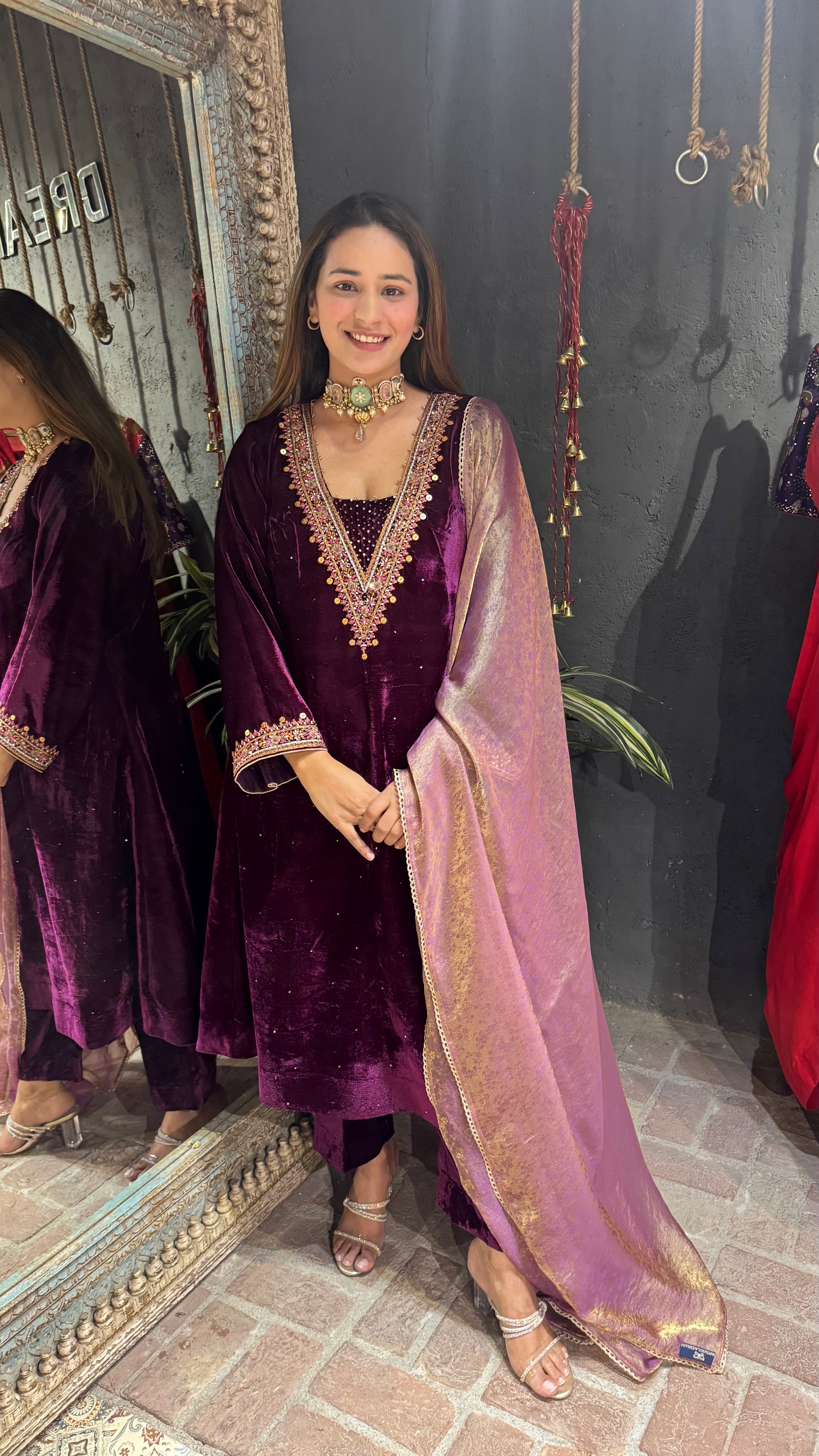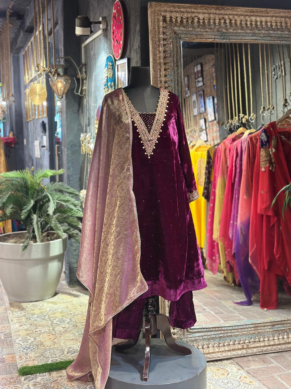 Fabric details: Kurta-Velvet, Pants-Velvet, dupatta- Printed Organza