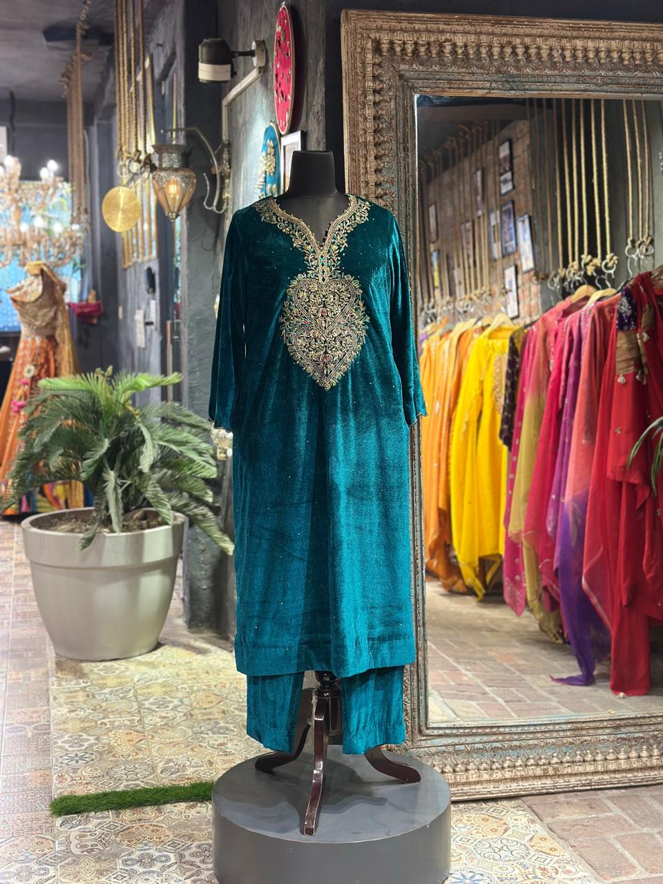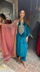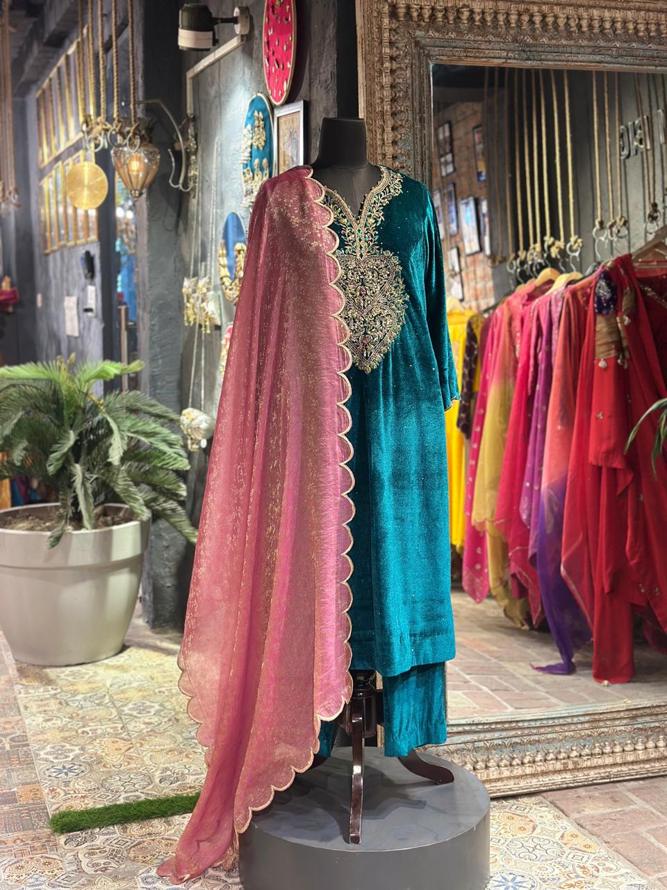 Fabric details: Kurta-Velvet, Pants-Velvet, dupatta- Printed Organza