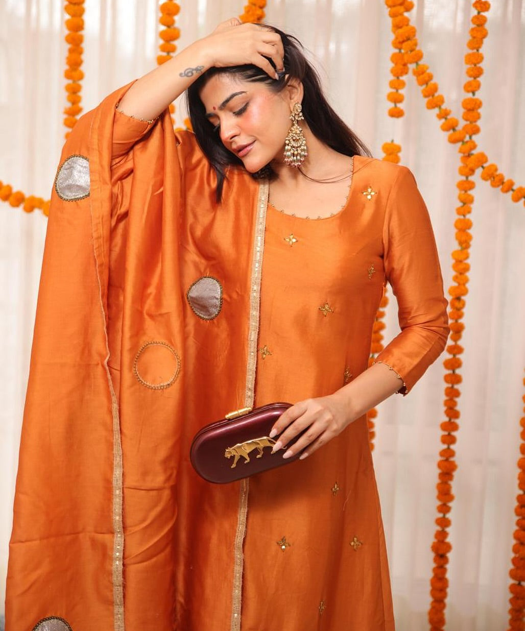 Kritika khurana in Orange Gotta Patti Suit set