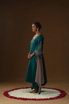 Description: Grace meets sophistication in the Ambar Phool Embroidery Suit Set from the Laal Ishq collection. Crafted in soothing tea blue hues, this ensemble features exquisite dori embroidery on luxurious raw silk, paired with fluid georgette pants and a lightweight organza dupatta. A perfect blend of tradition and modern finesse, ideal for festive gatherings and elegant occasions.