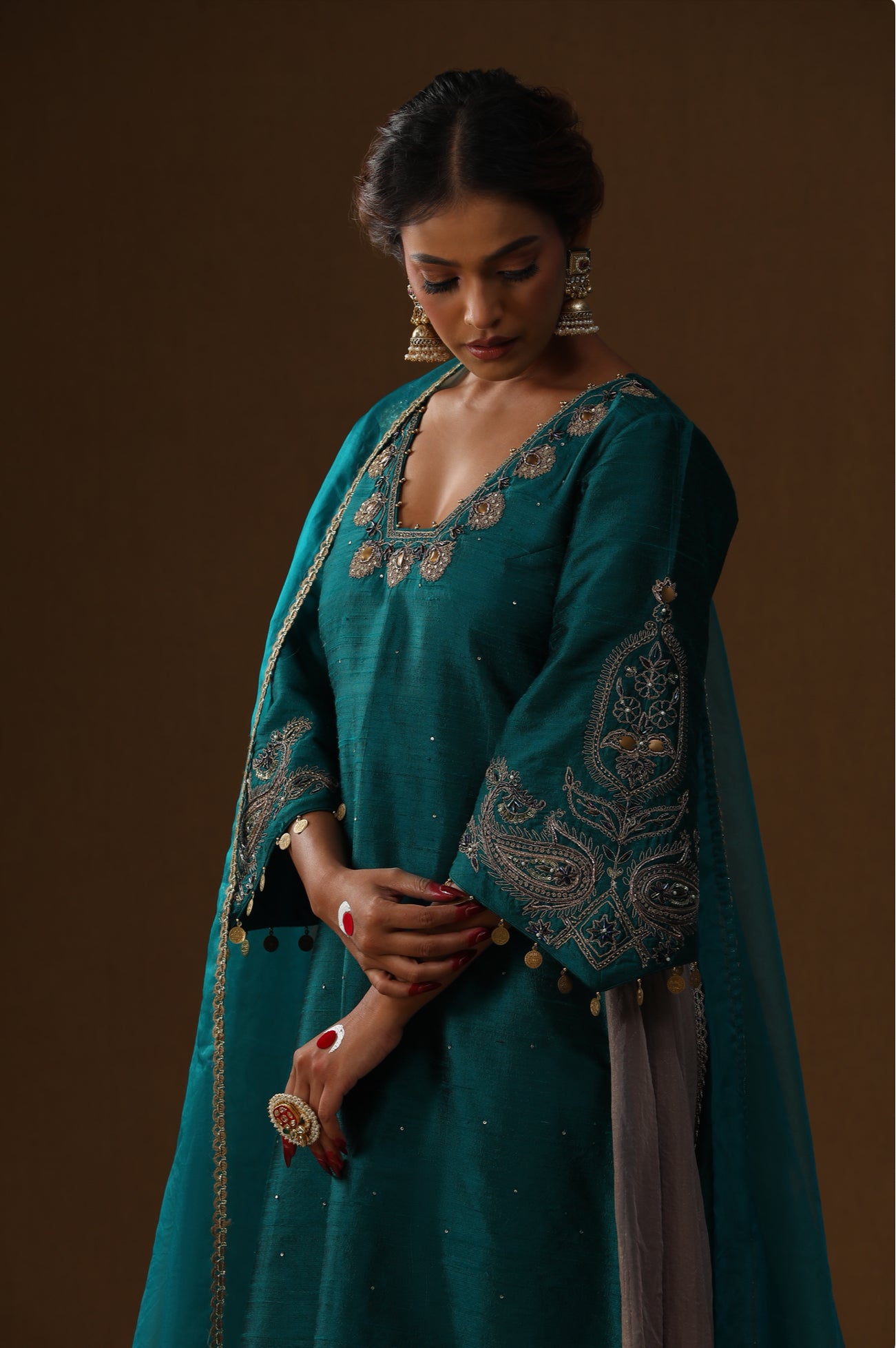 Bottle Green Silk Garara Set