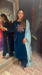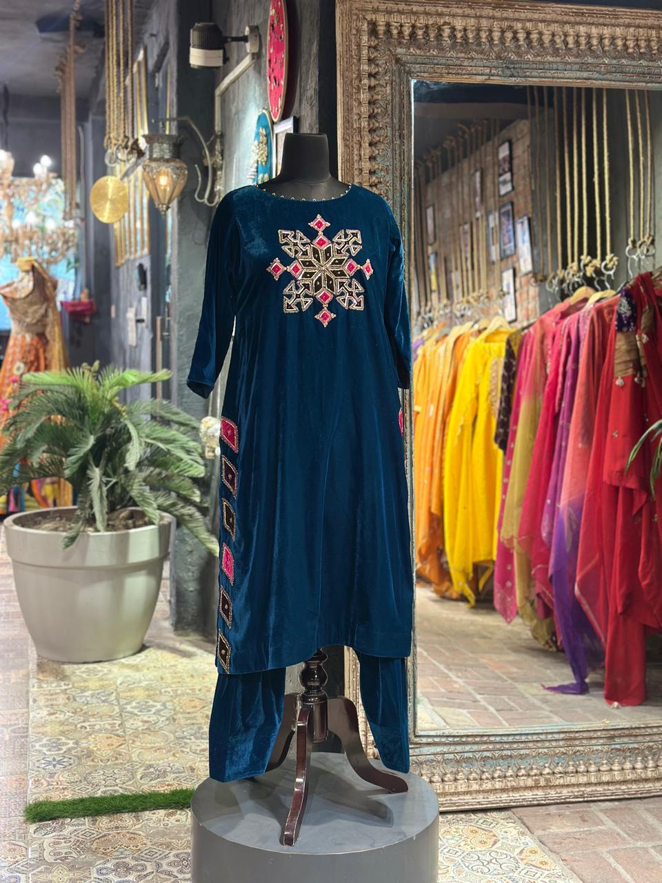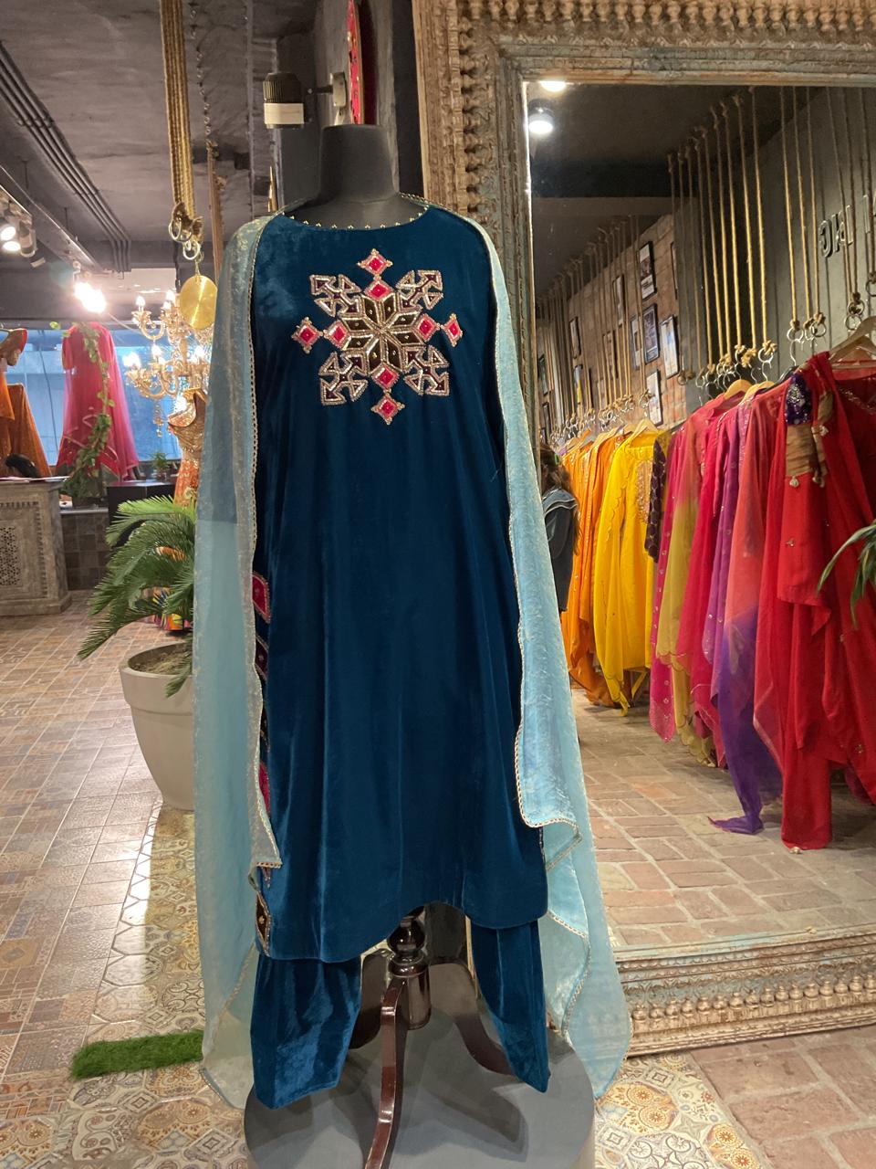 Fabric details: Kurta-Velvet, Pants-Velvet, dupatta- Printed Organza
