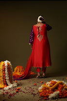 Red chanderi silk kurta set