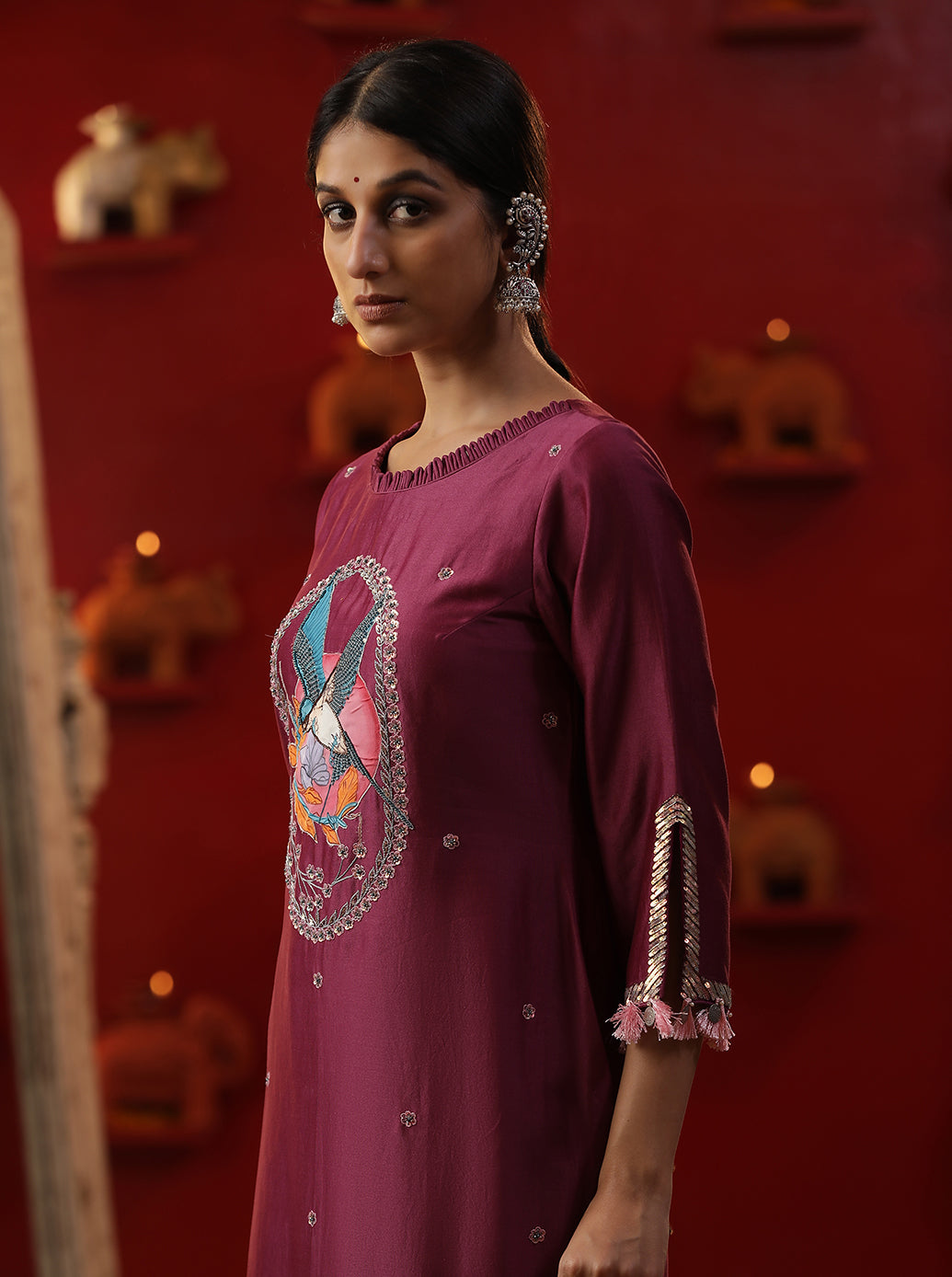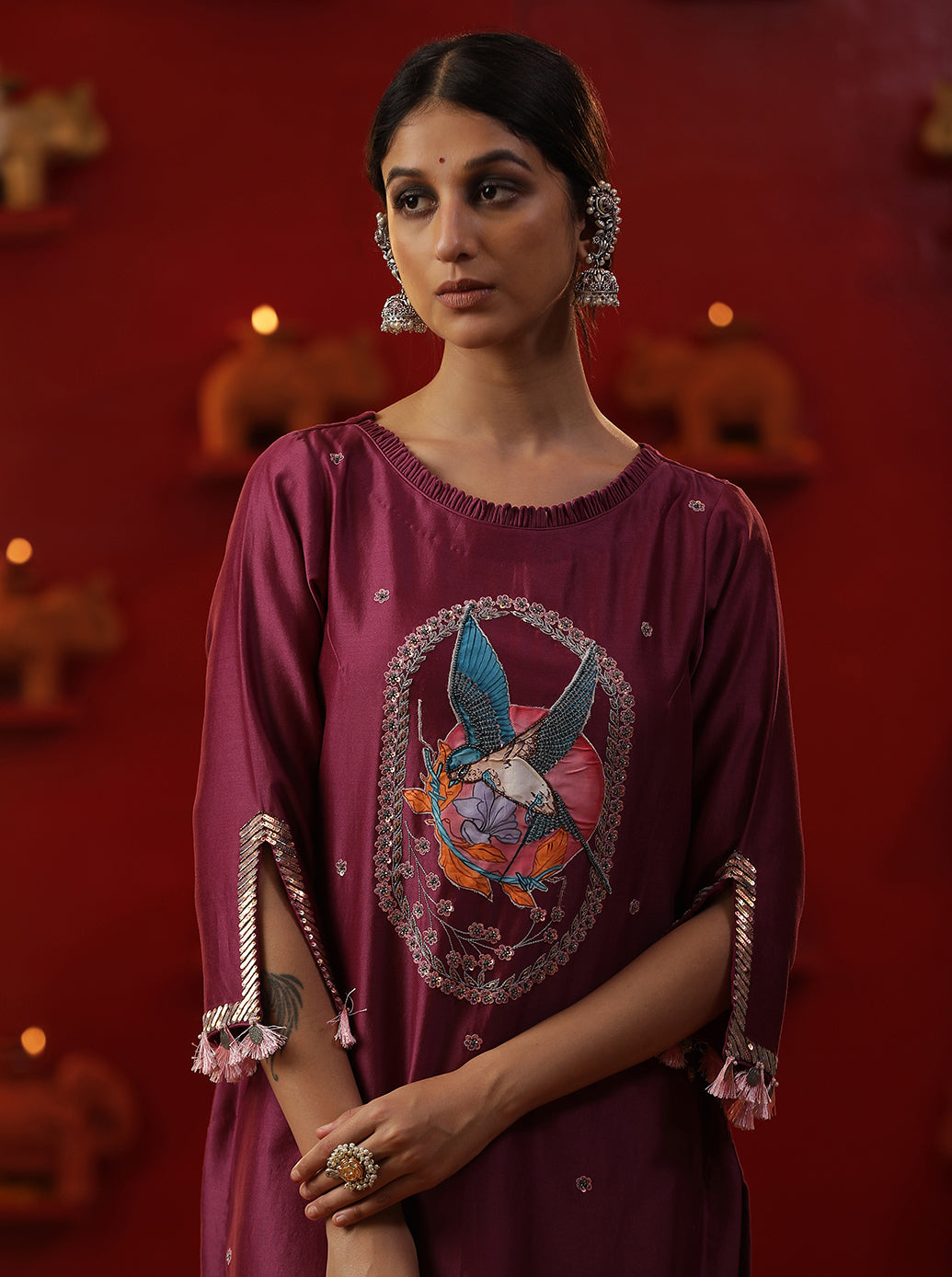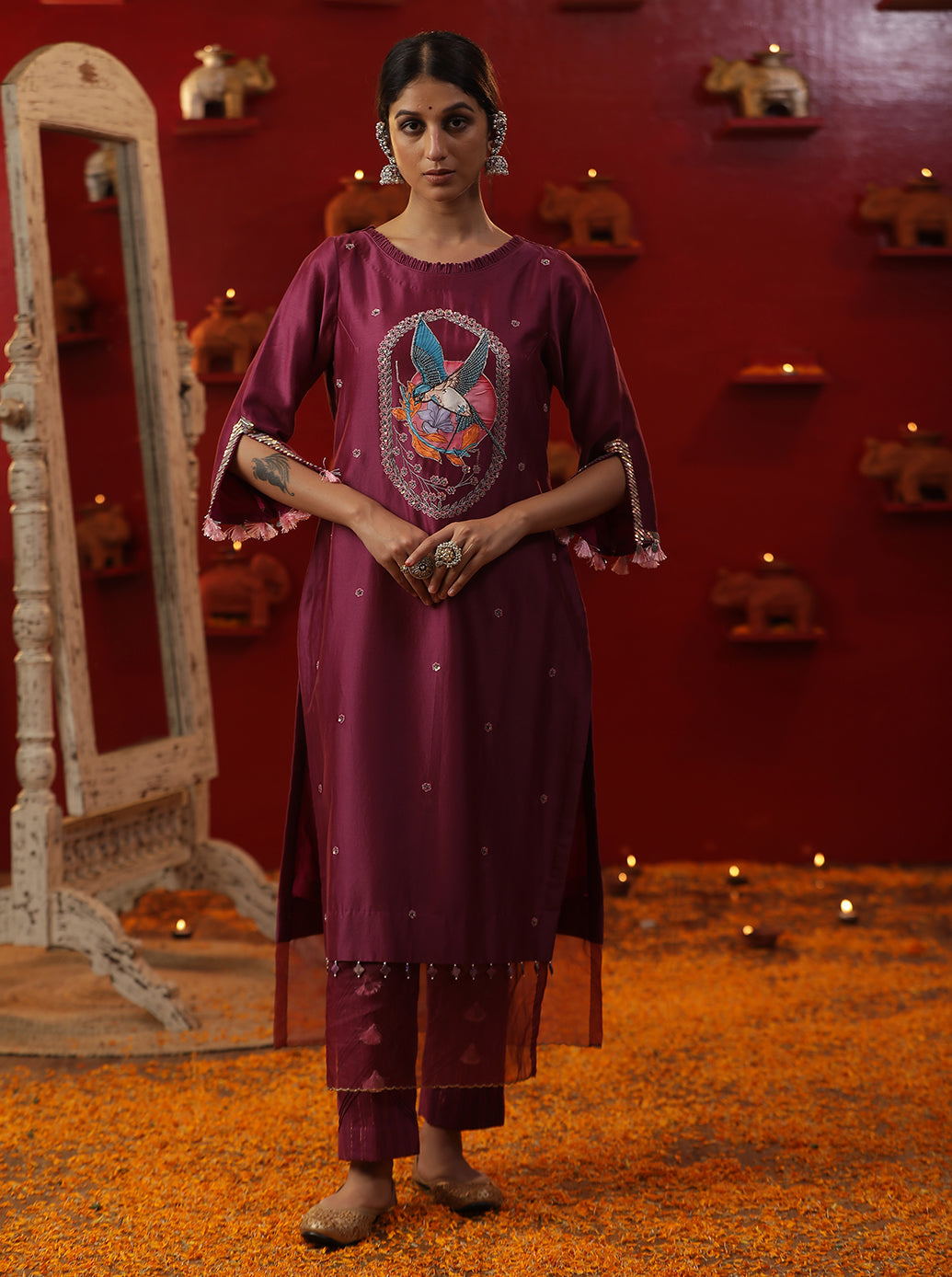 Purple bird handpainted suit set