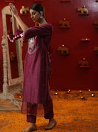 Description: The image shows a woman wearing a hand-painted suit, which appears to be a traditional Indian outfit. The suit is a long tunic with matching pants, and it is made of a lightweight material, possibly cotton or silk.Overall, the hand-painted suit is a stunning example of traditional Indian craftsmanship, and it is beautifully showcased on the woman in the image.