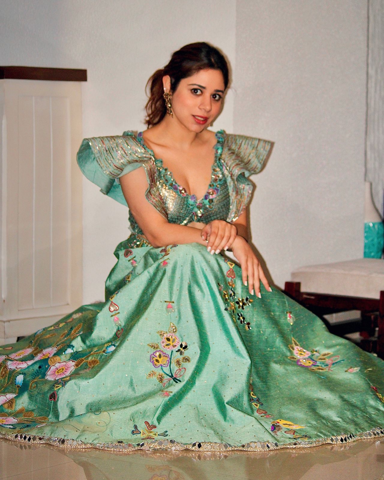 Tarini Bhatia in sapphire blue handpainted lehenga set