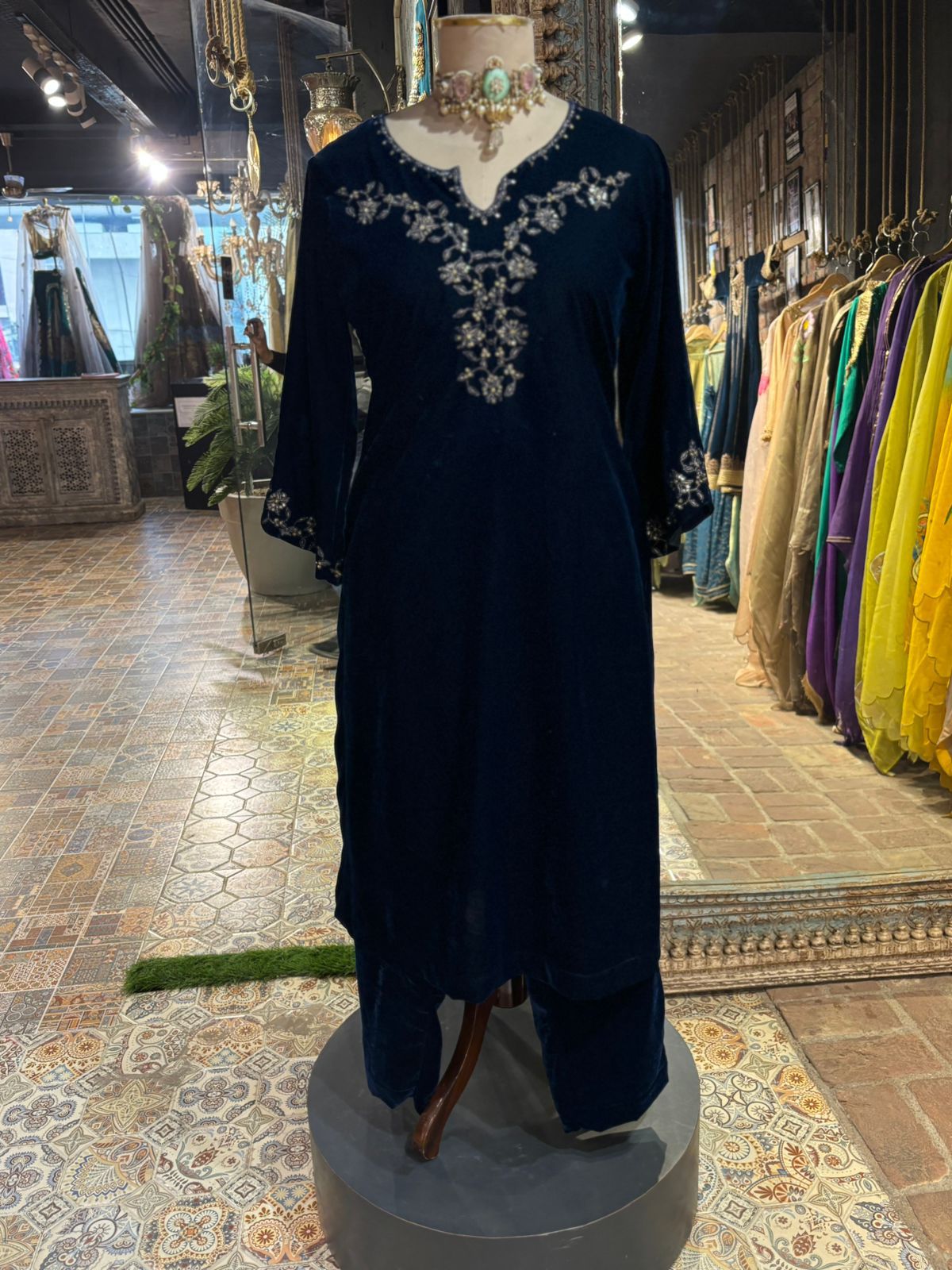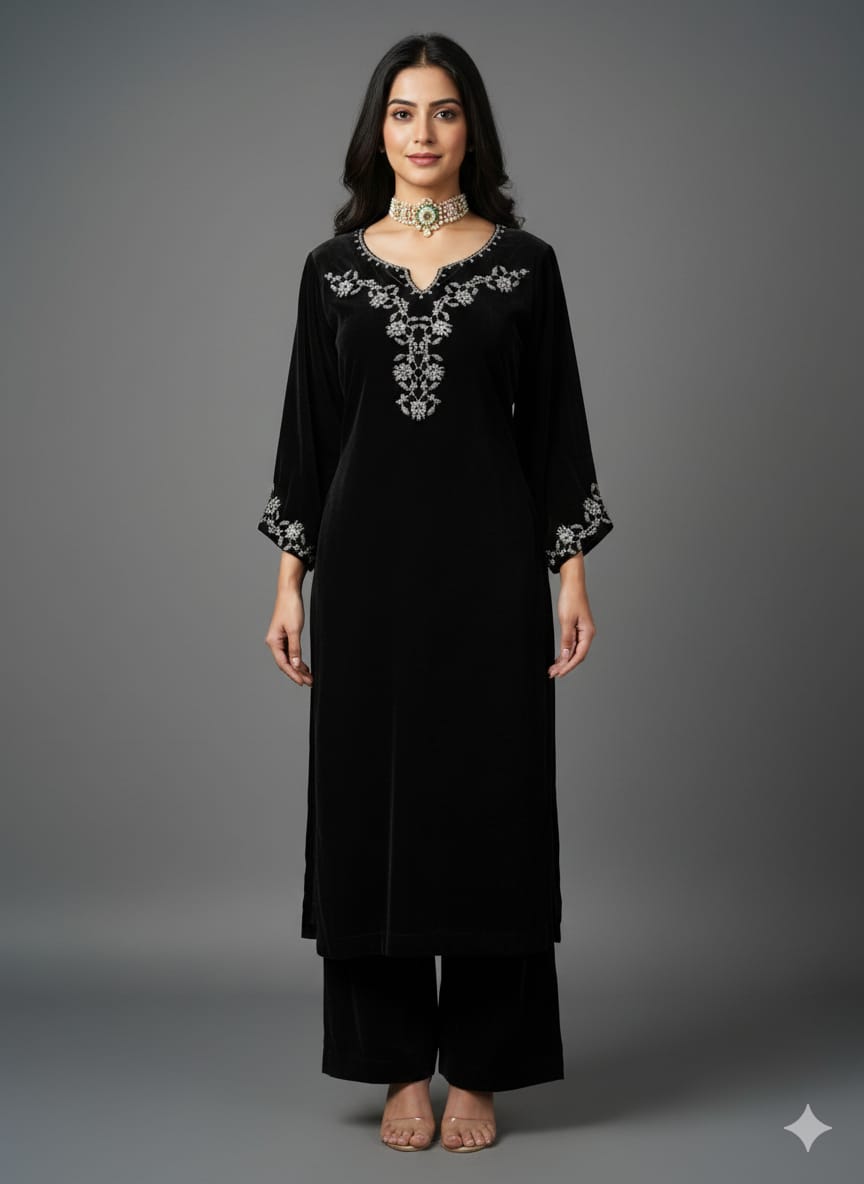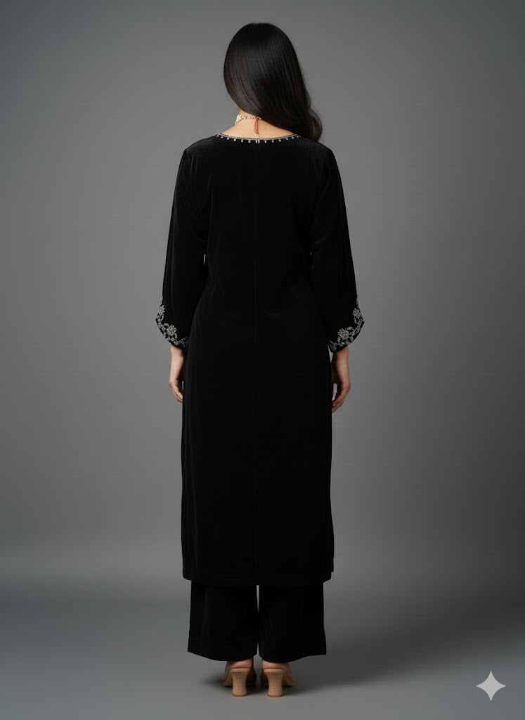BLACK VEVET KURTA SET
