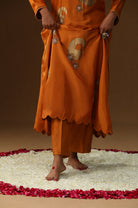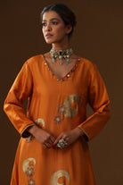 Description: Radiating warmth and sophistication, the Golden Stroke Orange Suit Set from the Laal Ishq collection beautifully captures festive elegance. Crafted in lustrous uppada fabric with refined golden stroke detailing, this vibrant orange ensemble is paired with a light kota dupatta, making it perfect for celebrations and daytime occasions.